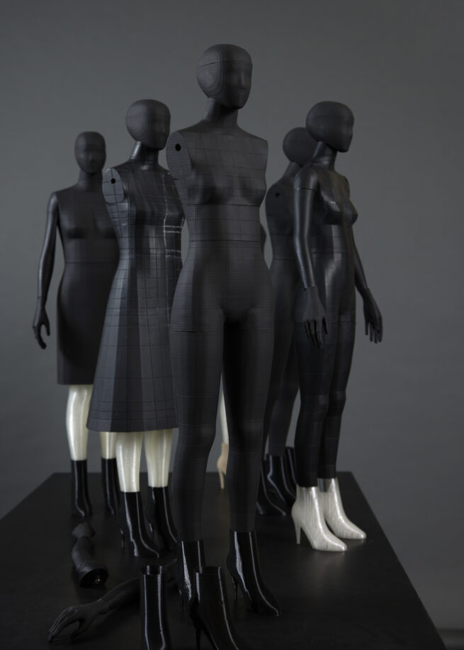 Eins unserer wichtigsten Produkte ist die 3D-gedruckte Arbeitspuppe EDITH. Die Ganzkörper-Puppe fängt die Eleganz weiblicher Körpersilhouetten ein und bildet gleichzeitig Konfektionsgrößen präzise und maßhaltig ab. Sie ist modular aufgebaut, lässt sich an verschiedene Zielgruppen anpassen oder komplett nach Kundenwunsch customisieren.